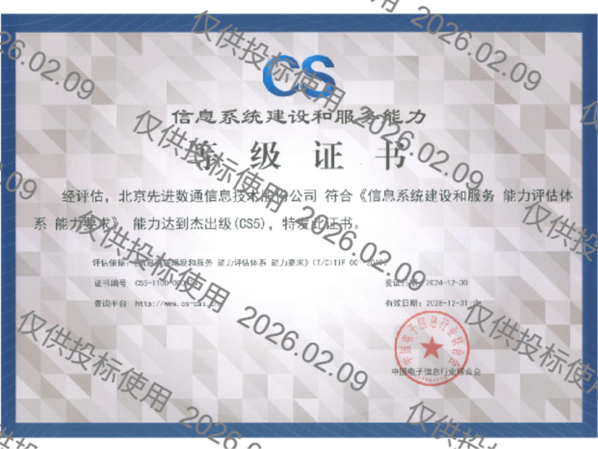 710公海赌赌船官网先后取得CMMIL5、软件能力成熟度五级(SPCA 5)、信息系统建设和服务能力评估体系(CS)5级、ITSS成熟度一级、信息系统安全集成服务资质二级、信息系统安全运维服务资质二级、国产化信息系统集成和服务能力评估四级(LS4)、北京市企业技术中心等资质认证,并取得ISO9001、ISO20000、ISO27001、ISO14001、ISO45001、ISO22301、ISO37001、ISO28001、GBT29490等标准体系认证,具备行业领先的技术开发、工程实施及服务保障能力。