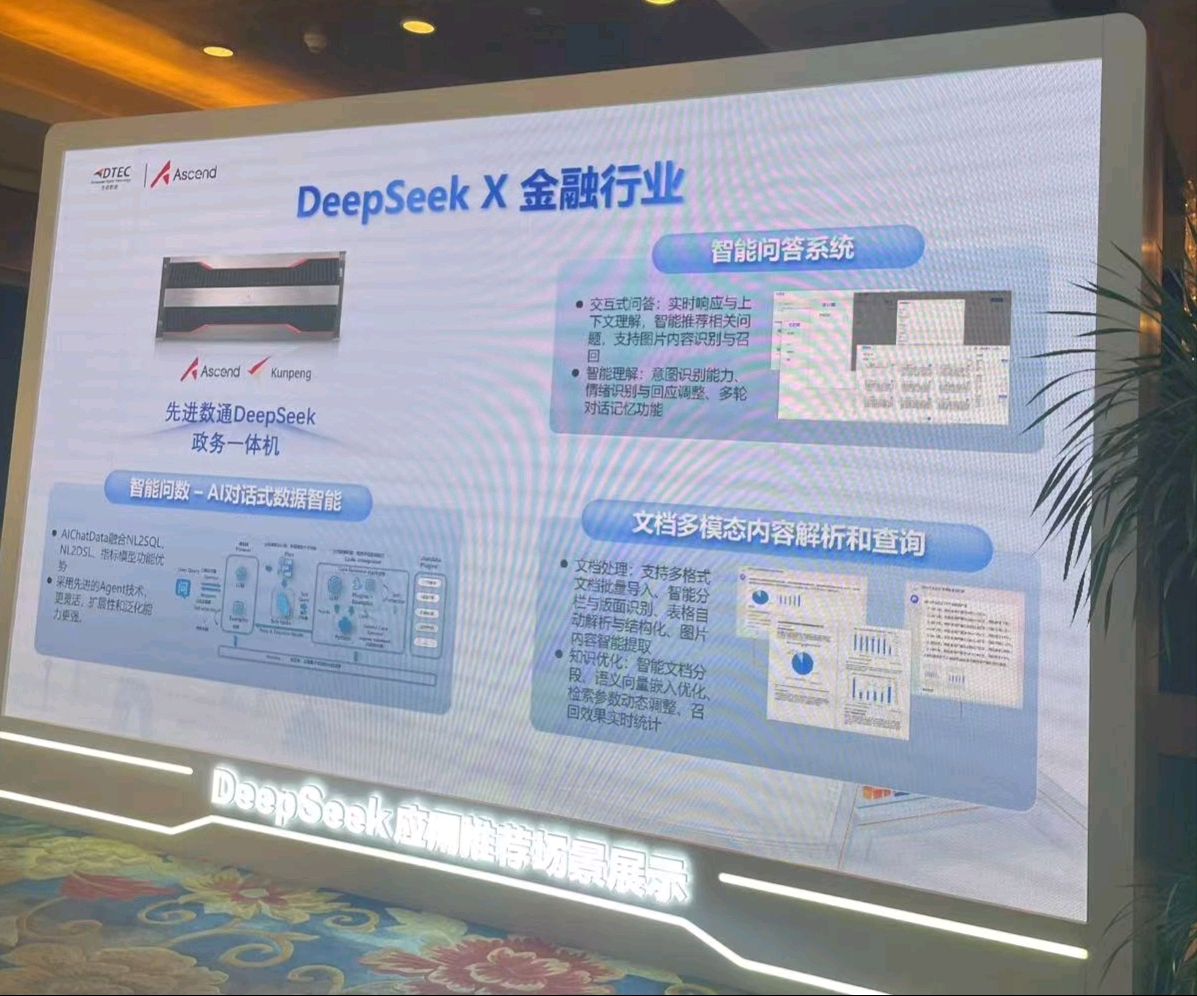 本次大会710公海赌赌船官网展示了DeepSeek一体机,向业界全方位展示了其在金融科技领域的创新实力。710公海赌赌船官网DeepSeek一体机的文档多模态内容解析和查询功能备受瞩目。它能够对各类金融文档,如研究报告、监管文件、交易记录等进行全方位解析,将文本、图表、图像等多模态信息转化为可高效查询和分析的结构化数据。金融组织借此可快速定位关键信息、洞察市场趋势、防范合规风险,为决策给予有力支持,实现从数据到价值的高效转化。