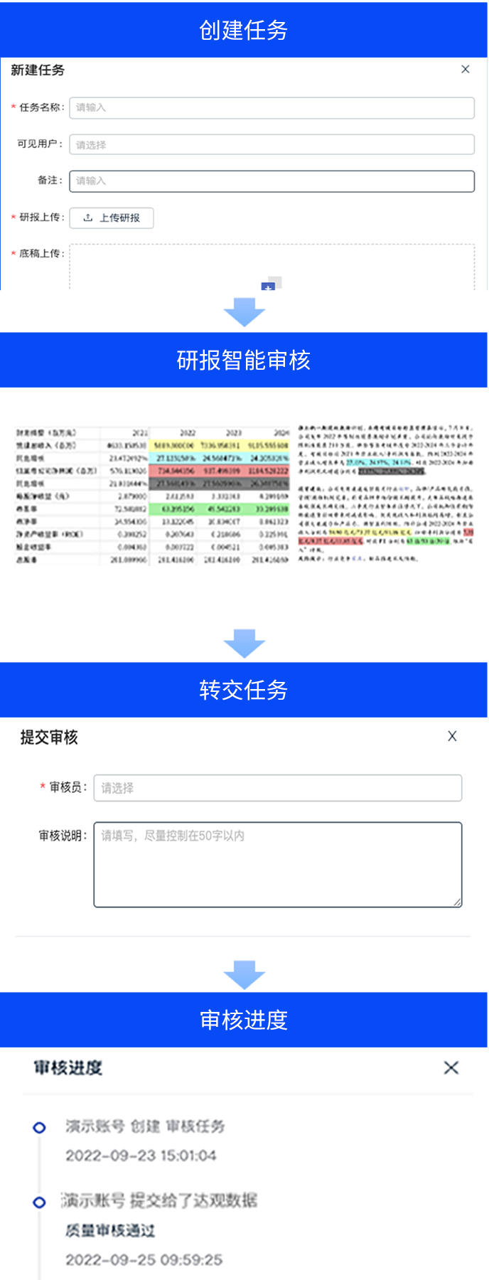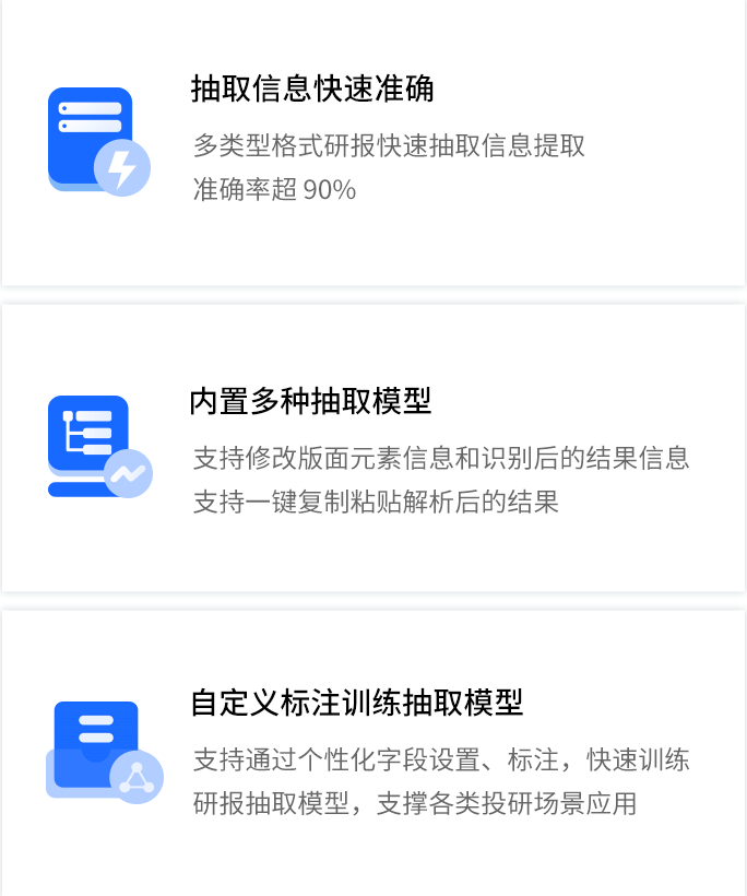 智能研报审核系统是710公海赌赌船官网数据为券商研究所、买方研究组织等用户打造的集研报解析、抽取、审核、管理功能为一体的产品。集成OCR、NLP、机器学习等技术,对研报和底稿信息进行多方面抽取,并对研报进行数据、文本、观点等全方位的自动化审核, 同时对研报和底稿进行规范化、流程化管理,帮助用户提升工作效率,把控研报发布的时效性和合规性,全面降低出错风险。
